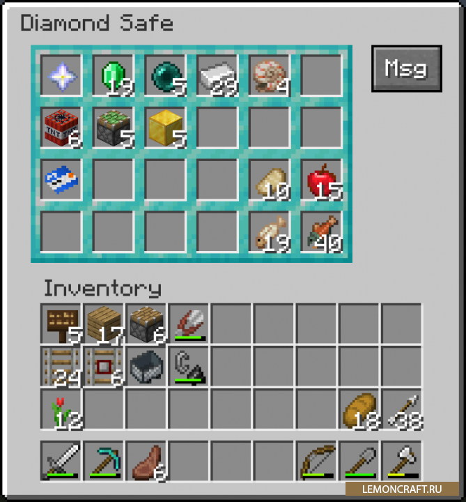 Мод на сейф Numerical добавляет в игру возможность хранить ваши предметы в безопасном, многофункциональном сейфе. Вы сможете создать сейф с карточкой-ключом, сейф с паролем и личный сейф, на котором будет установлен биометрический замок. Каждый из сейфом вы можете модернизировать, это увеличит их вместимость.